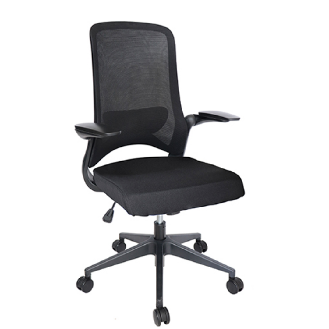Tapiz: respaldo de malla de color negro y asiento en tela color negro.
